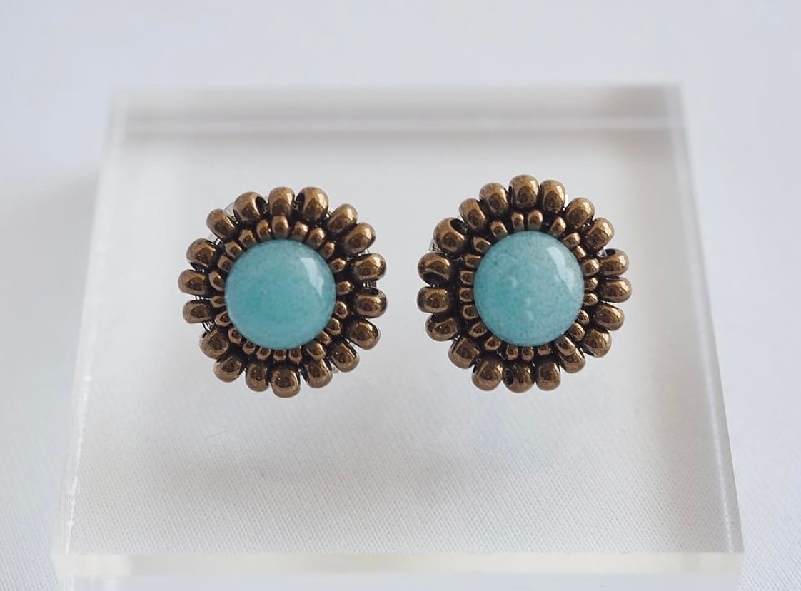 ビンテージ風にデザインし、周りにはガラスビーズを刺繍しています。
